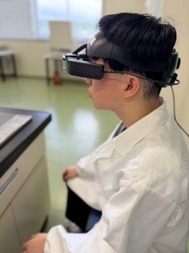 目の前の景色にデジタルな情報を重ねて表示できる端末です。遠くにいる農家さんの技術や高所作業中の様子などを見ることができます。