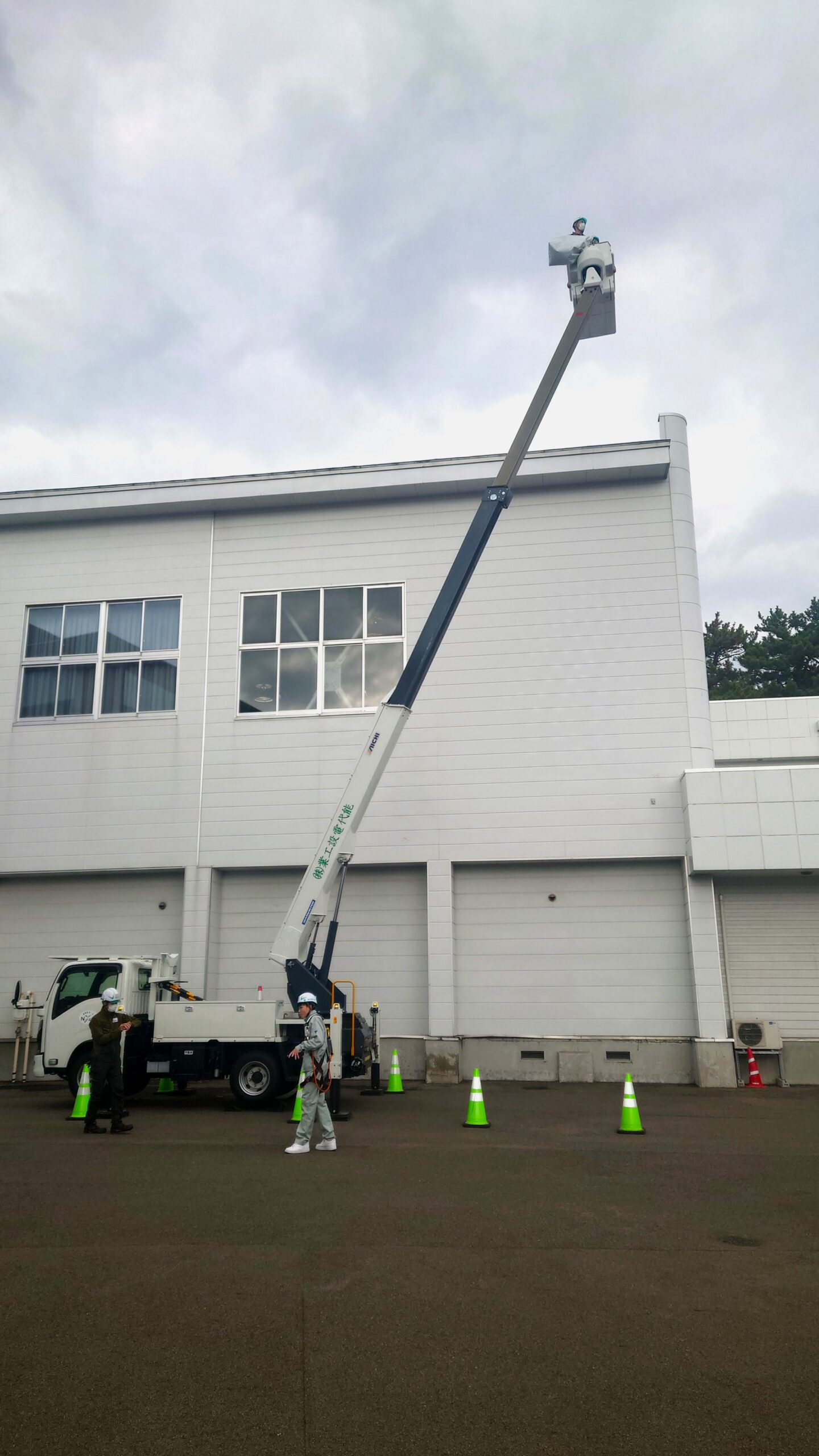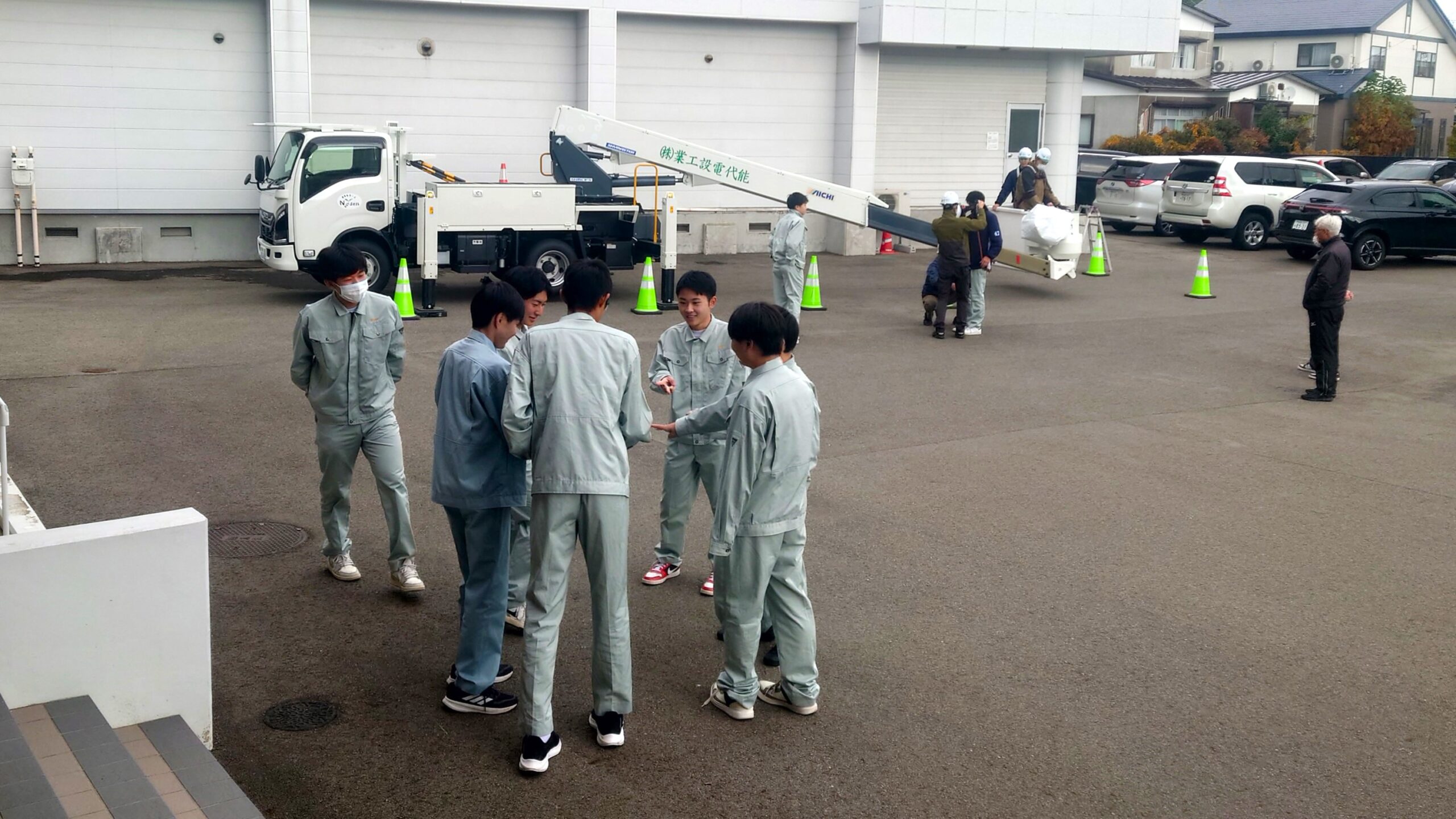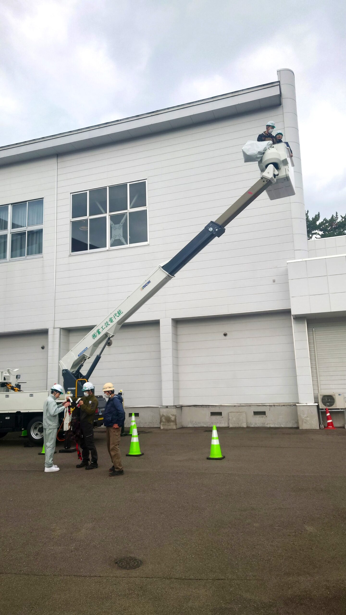 その中で実際の高所作業車も体験し、生徒は一人ずつ乗り込み高所を経験しました。