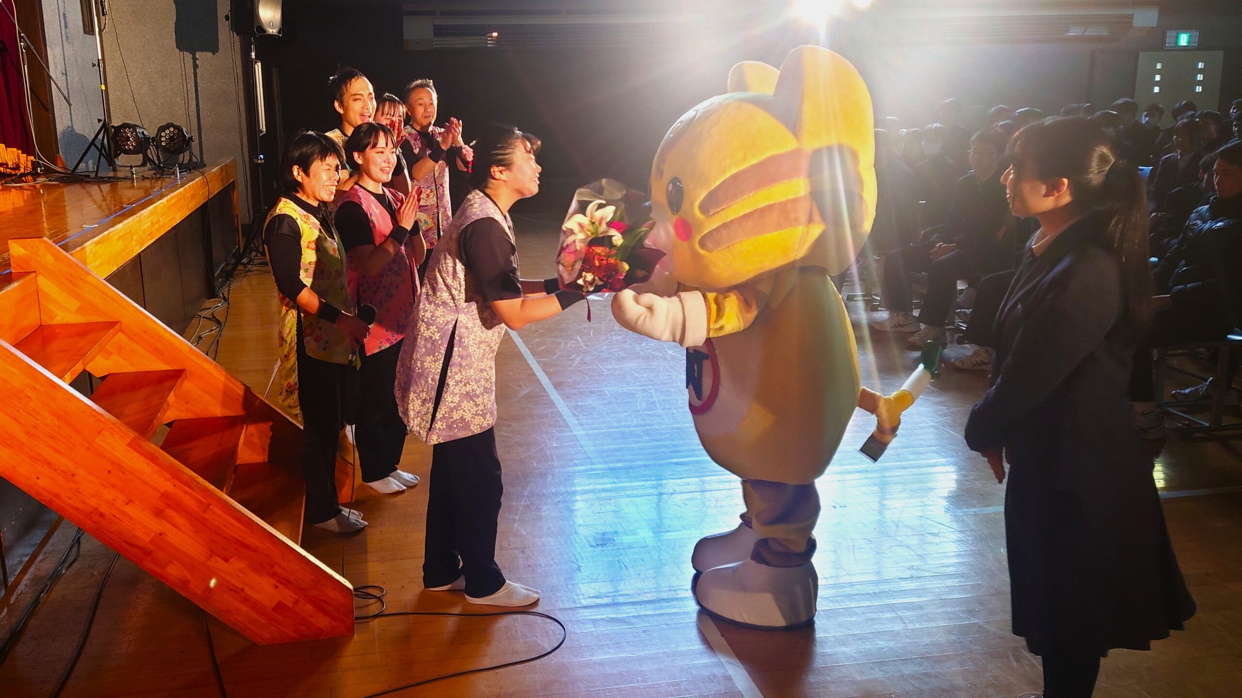 最後は新任生徒会長からのお礼の言葉と、にゃぎーからの花束贈呈が行われました。