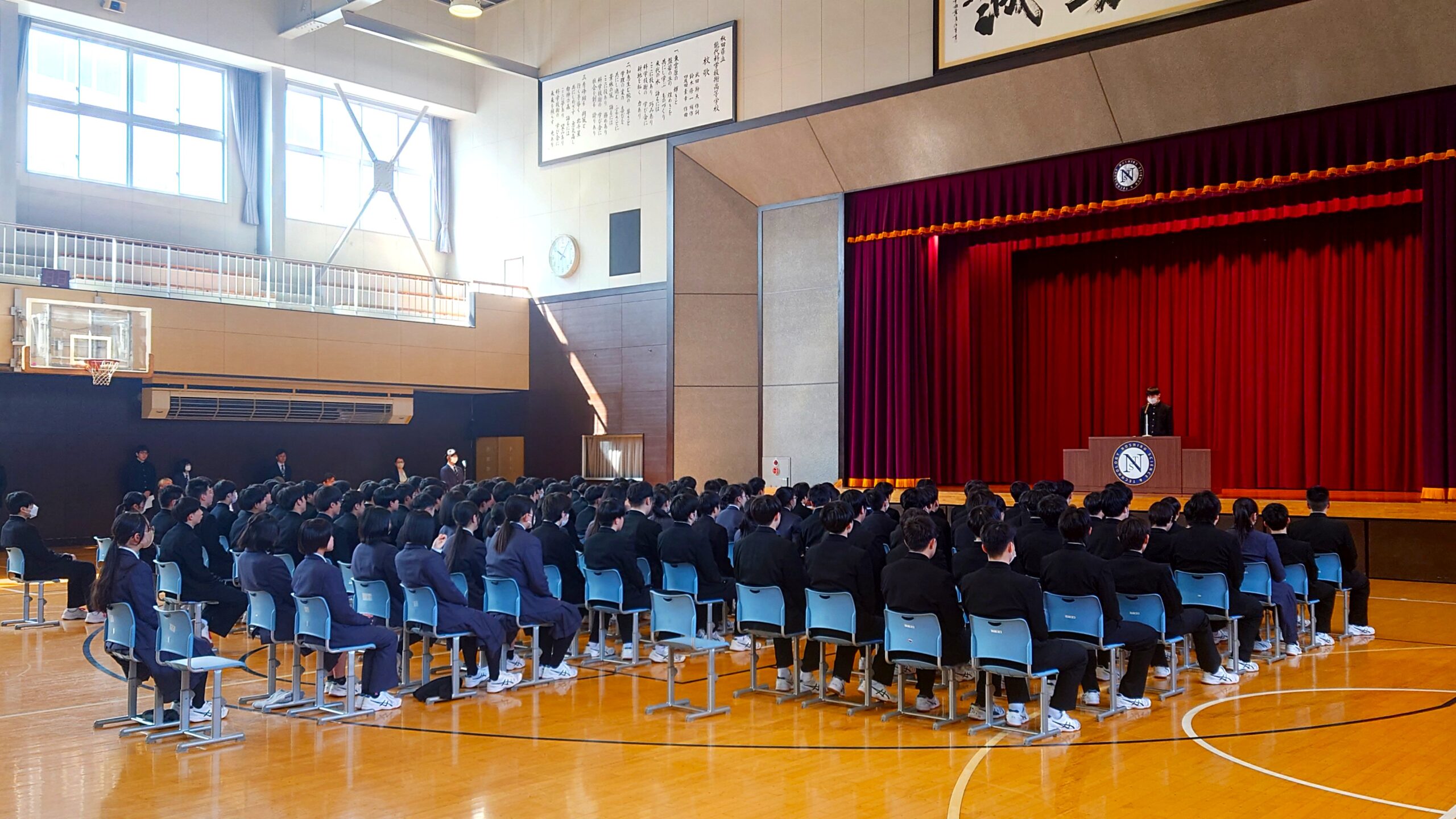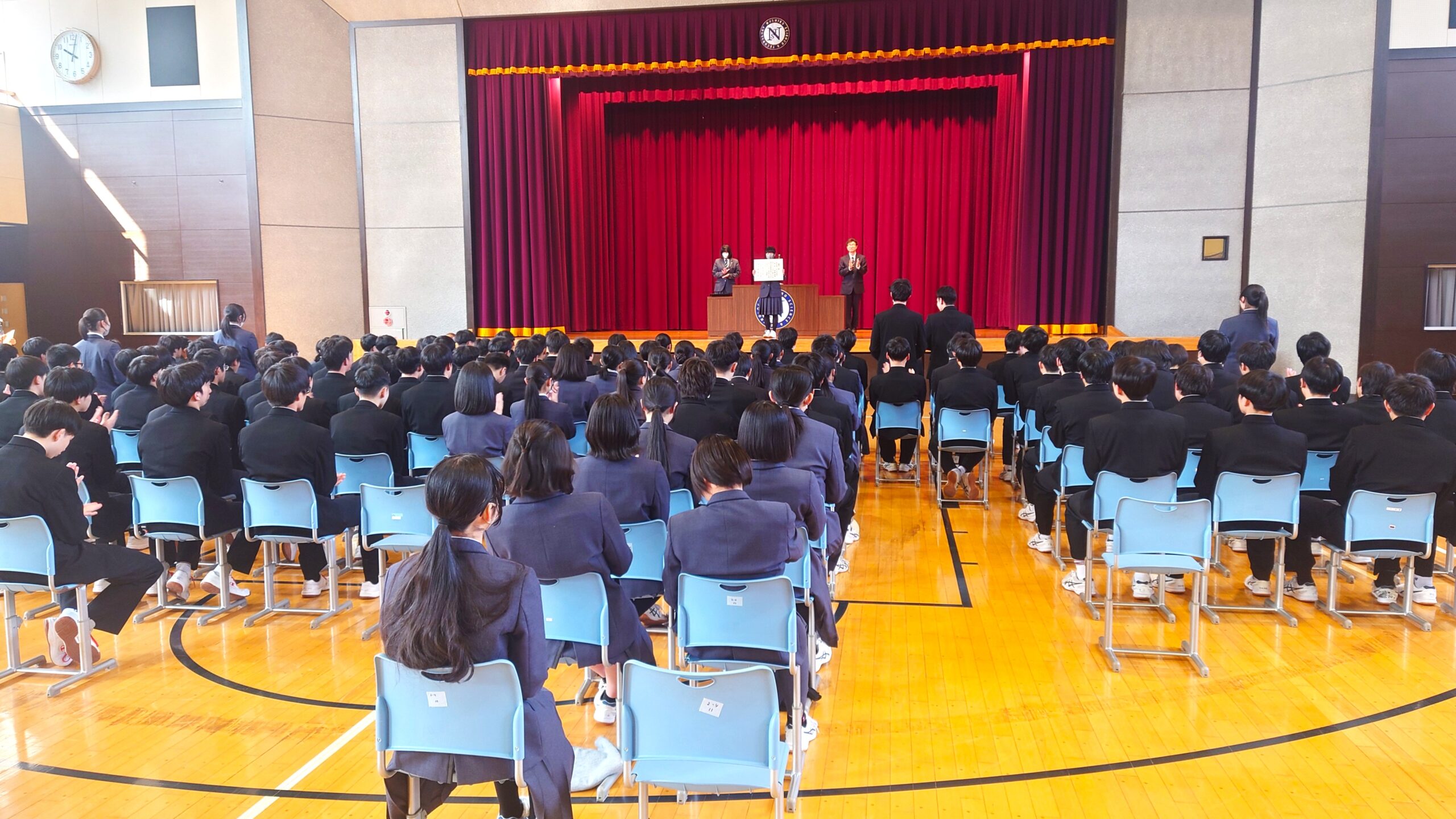 その後、生徒会長から全校生徒へ新年度の校則改定に関しての話がなされました。